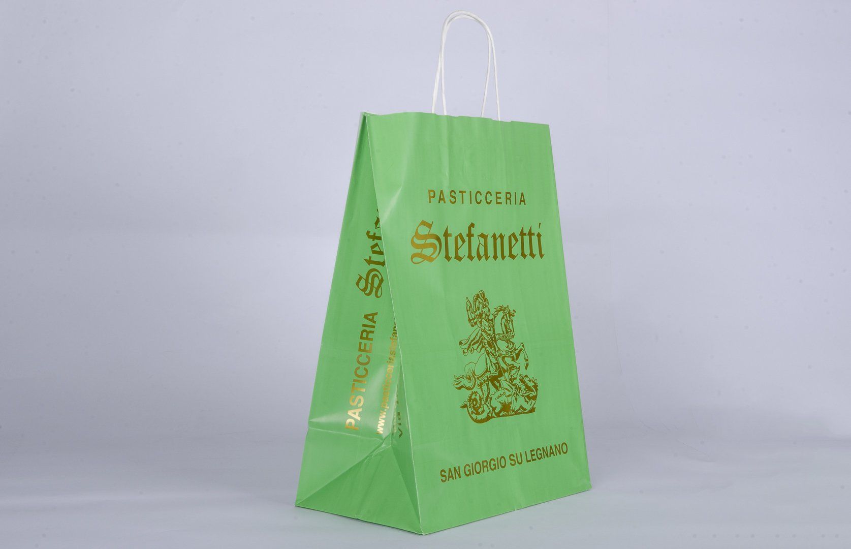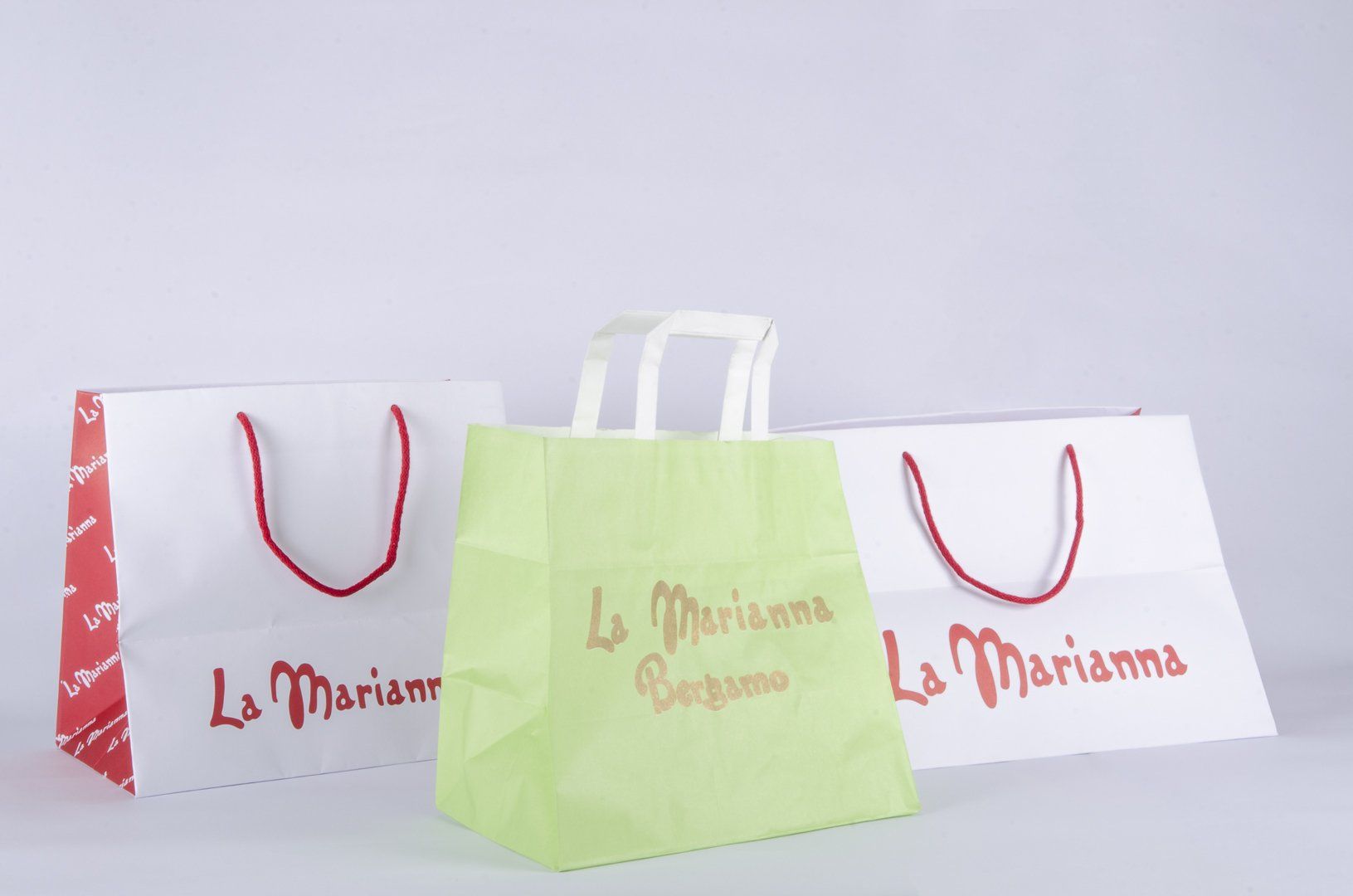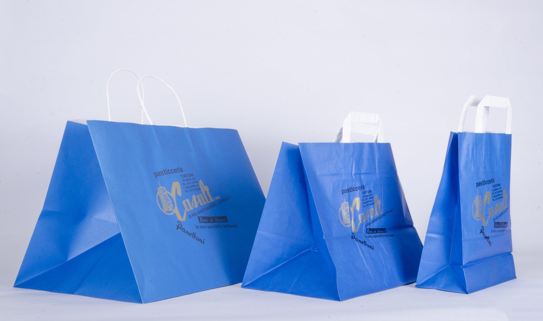 Sacchetti in carta - anche riciclata - con manico a piattina, annodato o ritorto.
